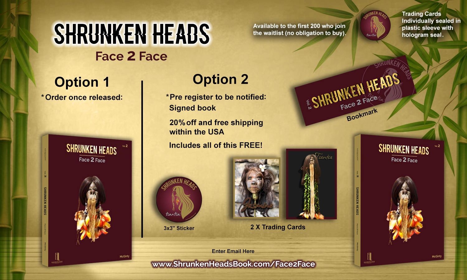 Be one of only 200 to receive Volume 2: Face 2 Face, the new book on shrunken heads — with free U.S. shipping, 20% off, exclusive SH freebies, and each copy personally signed, numbered, and dated.